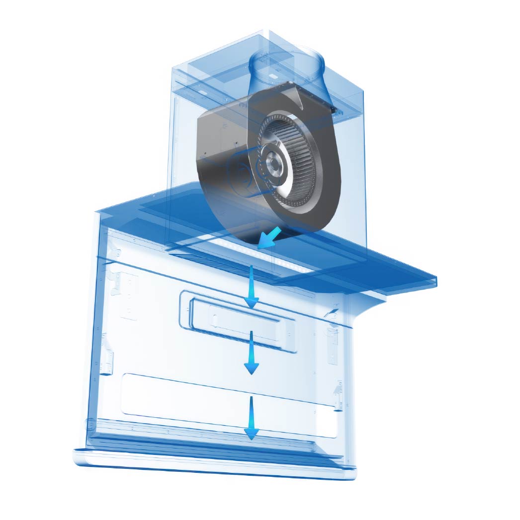 ช่องดูดอากาศด้านข้างที่ออกแบบให้อยู่ใกล้กับหม้อหรือภาชนะปรุงอาหารช่วยดูดอากาศได้อย่างรวดเร็วส่วนละอองน้ำมันและควันที่ยังดูดออกไม่หมดจะถูกดักจับโดยช่องดูดด้านบนควัน